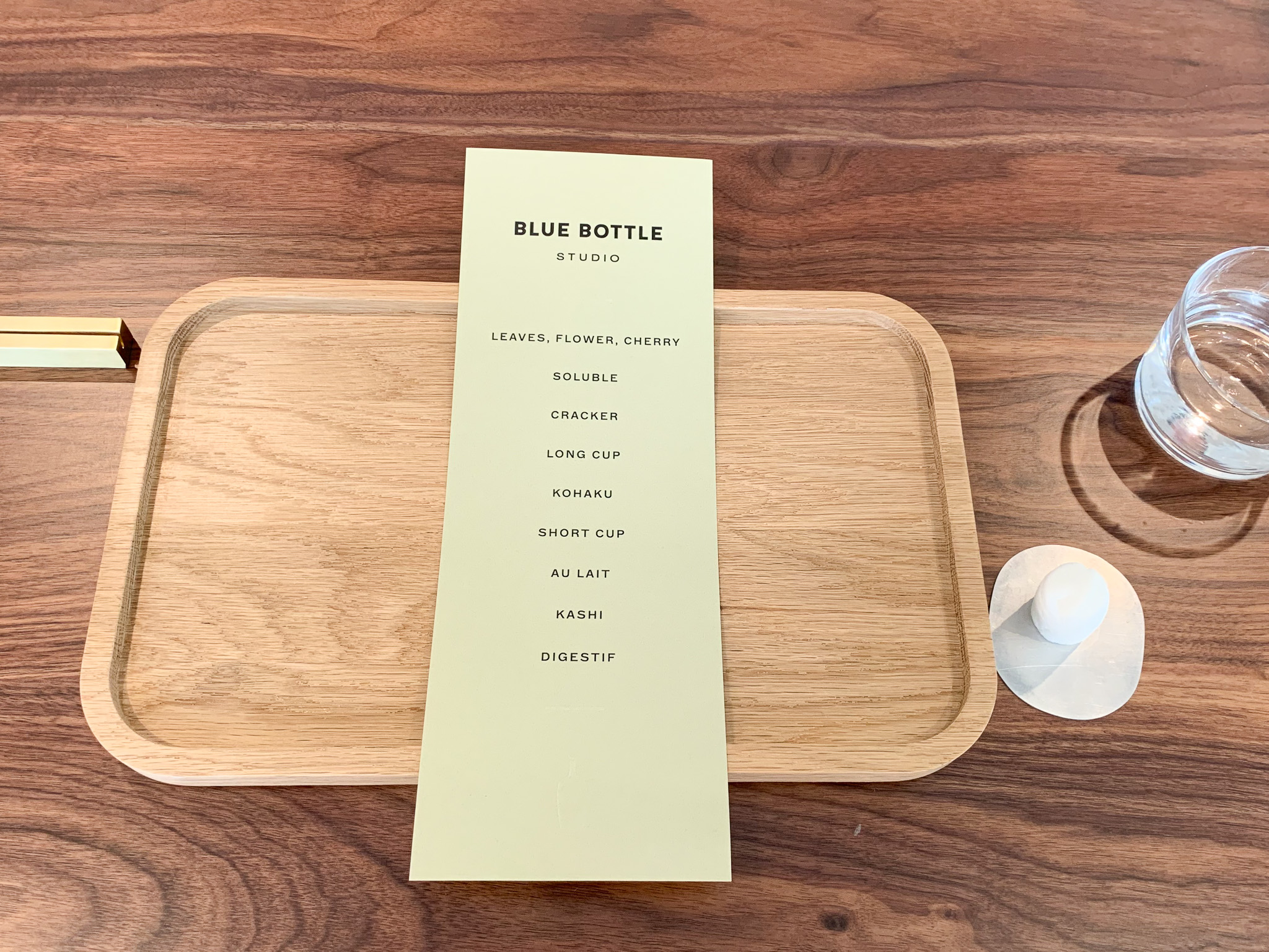 今回テーブル・セッティングに置かれたお品書きには、6種類の飲み方でいただくコーヒーと3種類のお菓子が記されていました。