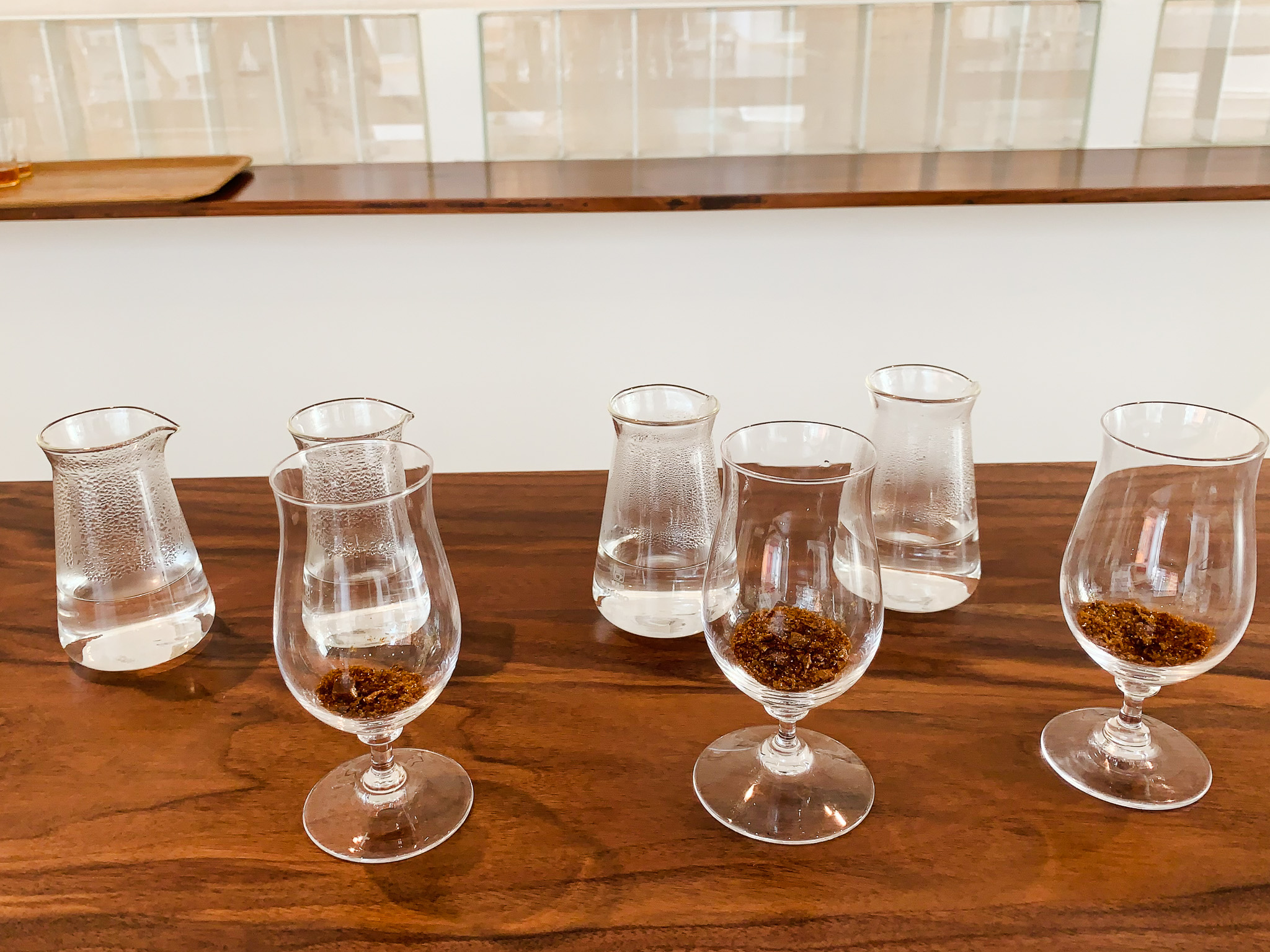 2つ目は、サクサクした粉末状のコーヒーらしきものが入ったグラスが出てきました。香りを嗅いでみると、黒砂糖とコーヒーの甘い香りがします。これにお湯を注いでみると、なんと! 甘い香りがゼロになり、コーヒーだけの香りに! 飲んでみても全く甘味を感じません! まるで手品のよう。