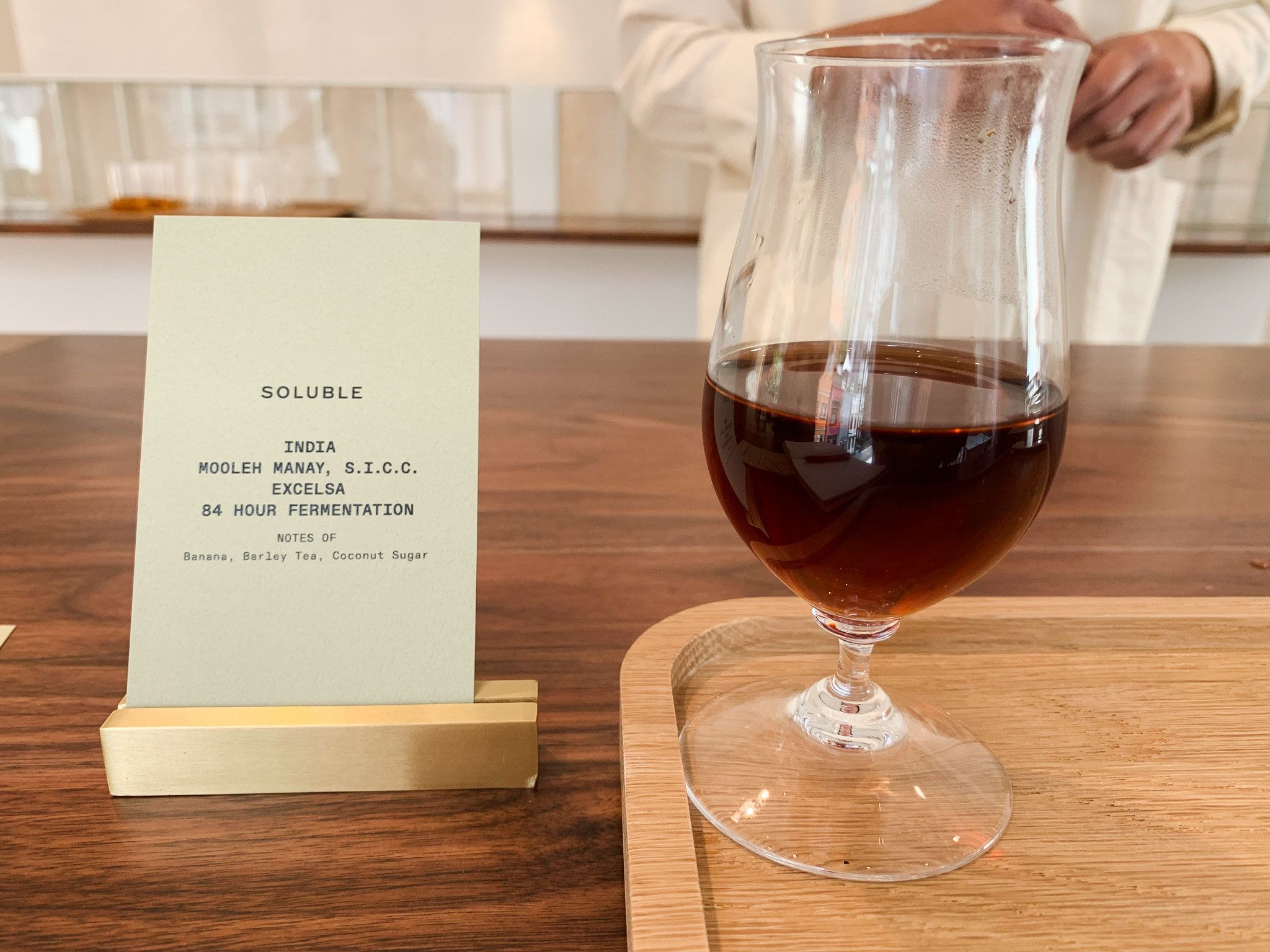 これはソリューブル と言って、インドのエクセルサを使用して作られたインスタントコーヒーで、コーヒー豆を84時間発酵させて作る、Blue Bottle Coffee自家製の新しいタイプのコーヒーなのだそうです。濃いお茶のようで飲みやすいです。