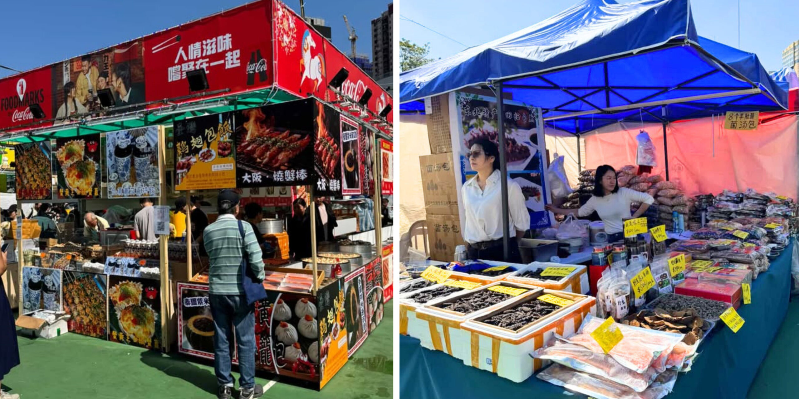 400店舗ものお店が並ぶビクトリアパーク。一歩足を踏み入れたら何時間でも遊べそうな雰囲気です。香港の人は旧正月には縁起を担いで金柑の木や、桃、蘭、水仙などをお正月用に迎える風習があります(香港の旧正月のお家の様子は、Terryさんのイラストをぜひご覧ください!)。花市での主な販売商品は生花や金柑の植木や風水的に良いとされる小ぶりな竹などです。大みそかの夜はオールナイトで営業するところもあり、終了間際の深夜には安売りも行われます。花だけでなく、干支グッズやハンドメイド作品、食べ物の屋台も出店されます。