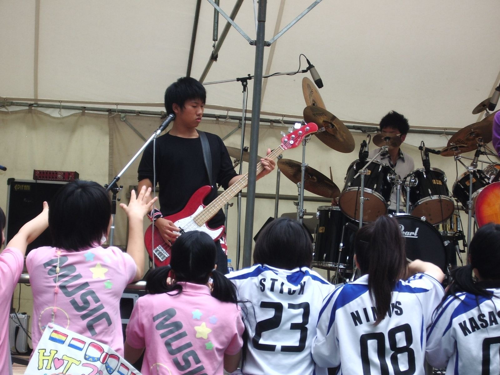高校生の頃のYHUさん。サクソフォーン第一だが、軽音バンドでベースも担当していた。