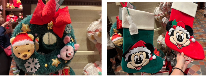 童心に帰り、夢の世界で思い切り遊んだ後、最後は大人の自分を取り戻し「お土産大人買い」を楽しみましょう。クリスマスシーズンを一層盛り上げるアイテムがお店の中に所狭し、と並んでいます。