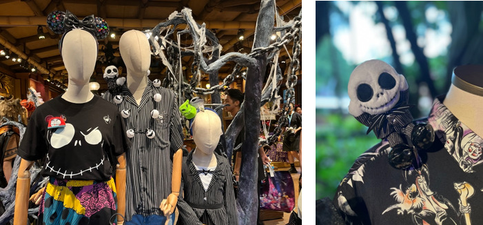 写真左、ナイトメアー・ビフォア・クリスマスがテーマのアパレル。写真右、肩のりジャック ©Hong Kong LEI