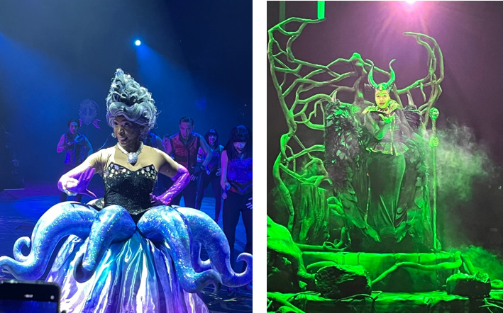 アースラとマレフィセント。パワフルな歌声が会場いっぱいに響きます。©Hong Kong LEI