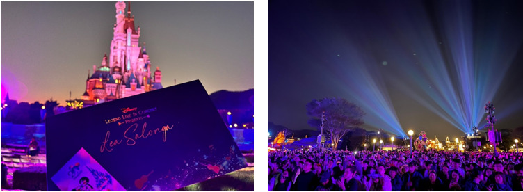 左:オシャレなコンサート・プログラム。開けるとプリンセス達が飛び出します。右:レア・サロンガの登場を今か今かと待つ、ディズニーランドのゲスト達。©Hong Kong LEI