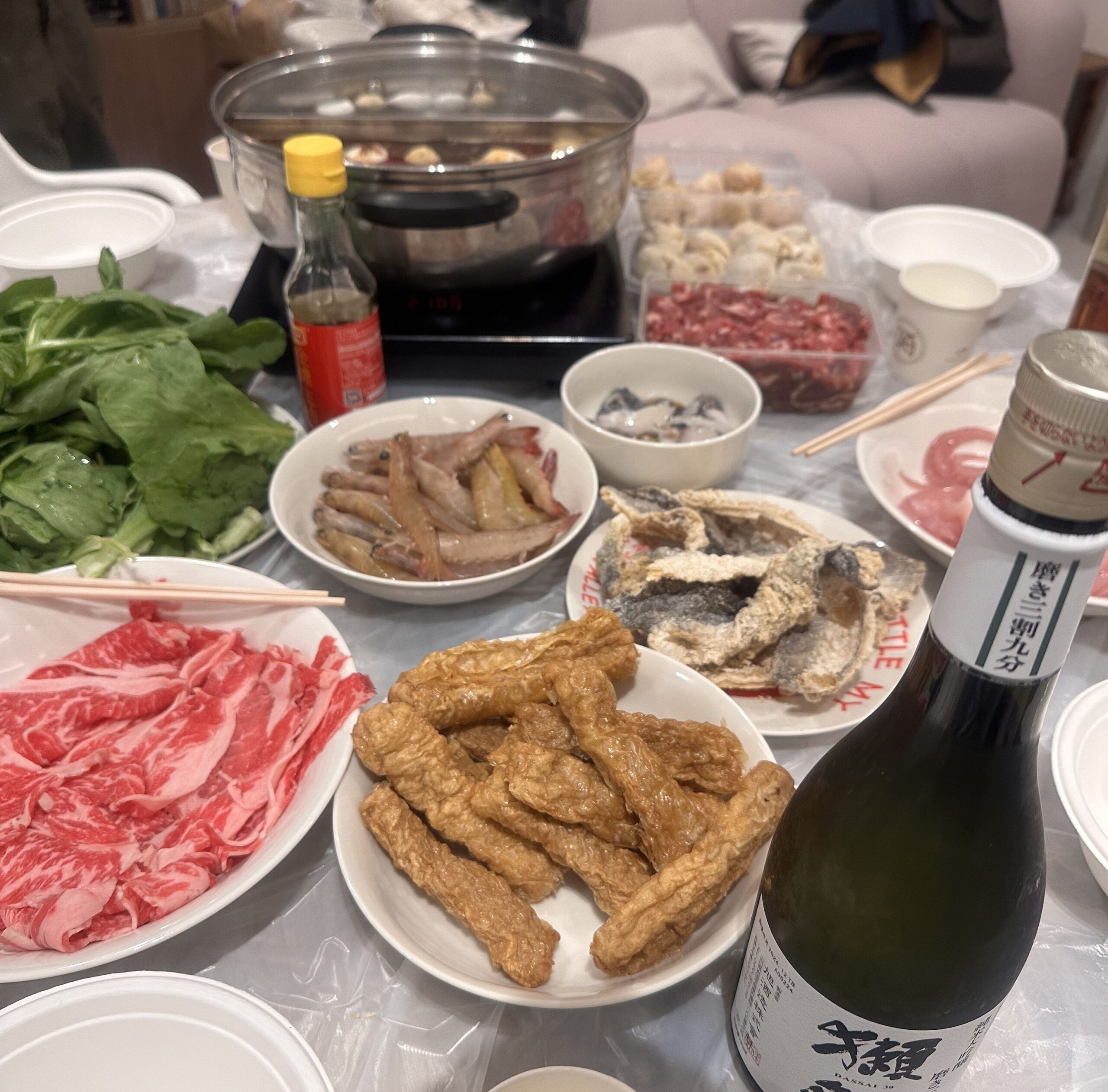 自宅カラオケでは絶対食事も必須。鍋を食べながら歌い飲んで深夜まで楽しみます