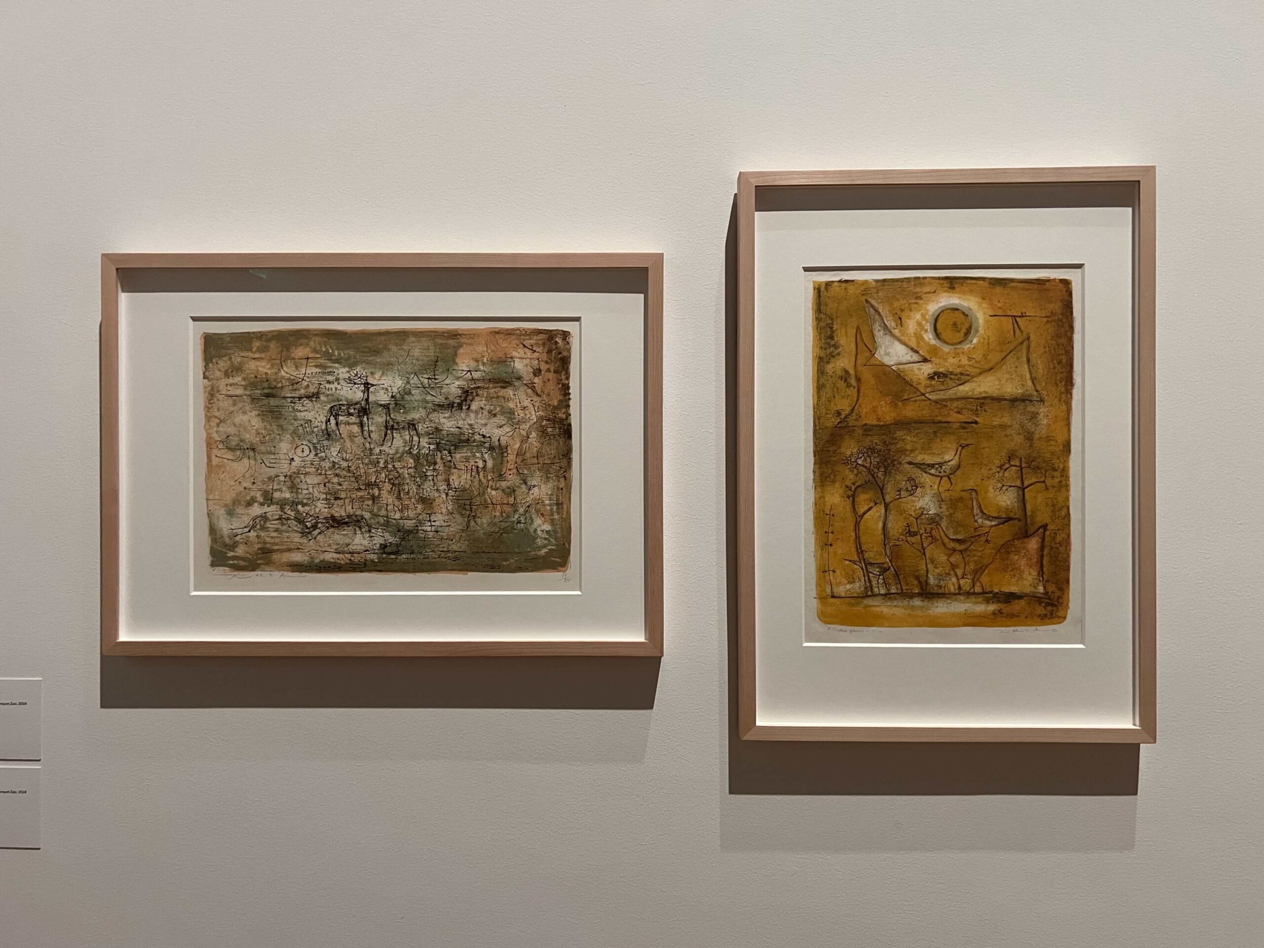 左:1951年の作品「鹿」リトグラフ 右:1952年の作品「山と鳥の群れ」リトグラフ photo by Hong Kong LEI