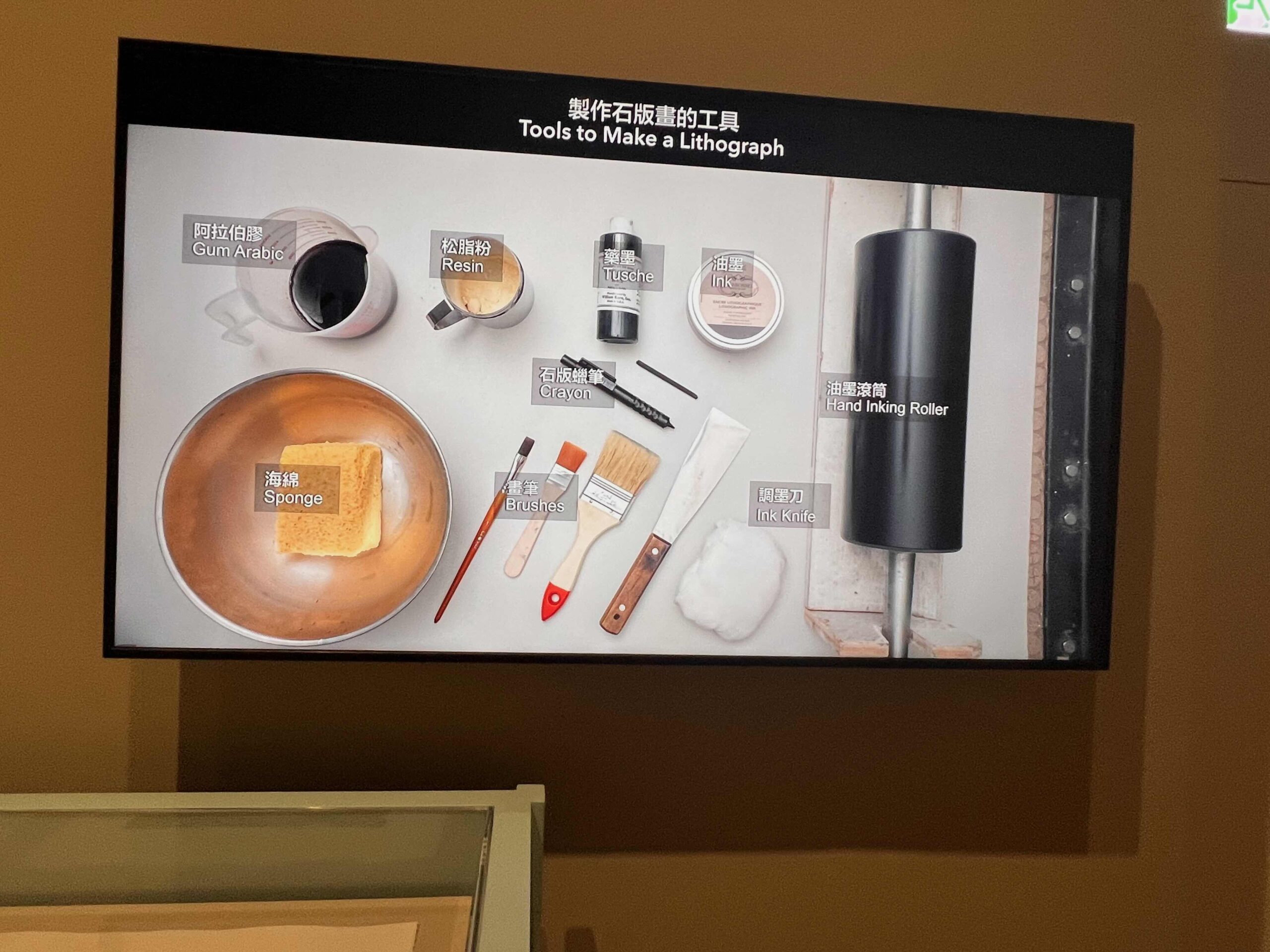 リトグラフ制作の道具を紹介するビデオ photo by Hong Kong LEI