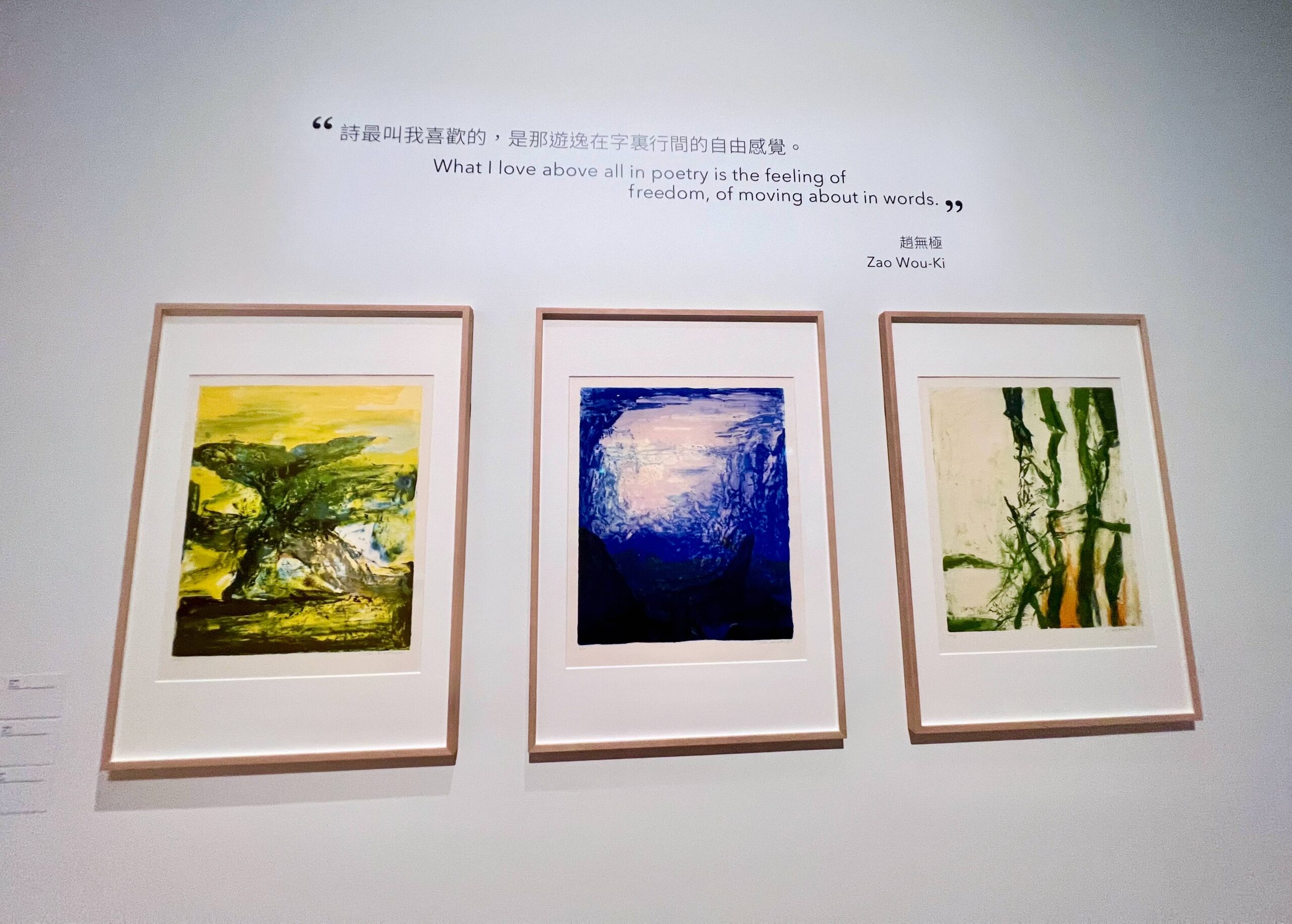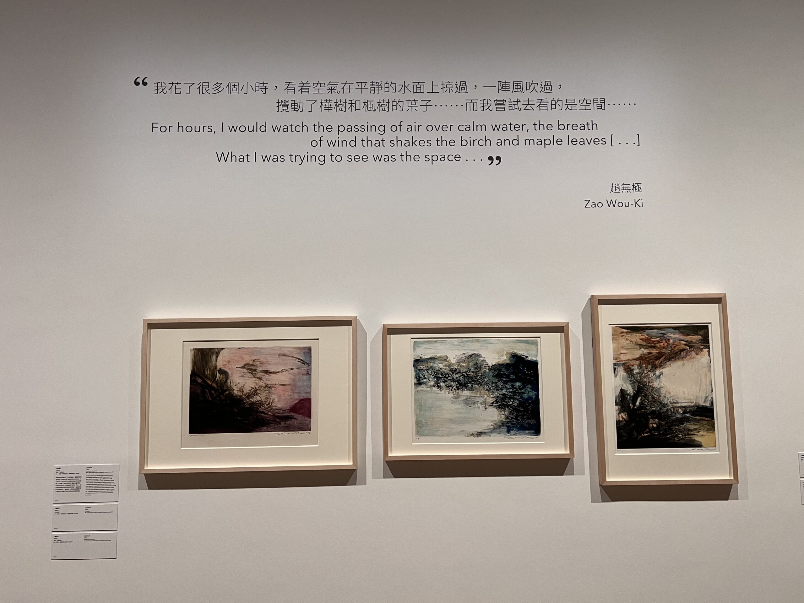 Photo by Hong Kong LEI 壁には「何時間も、静かな水面に漂う空気と、白樺とカエデの葉を揺らす風の息吹を眺めていました[ …]わたしが見ようとしていたのは、空間です… 趙無極」と書かれています。