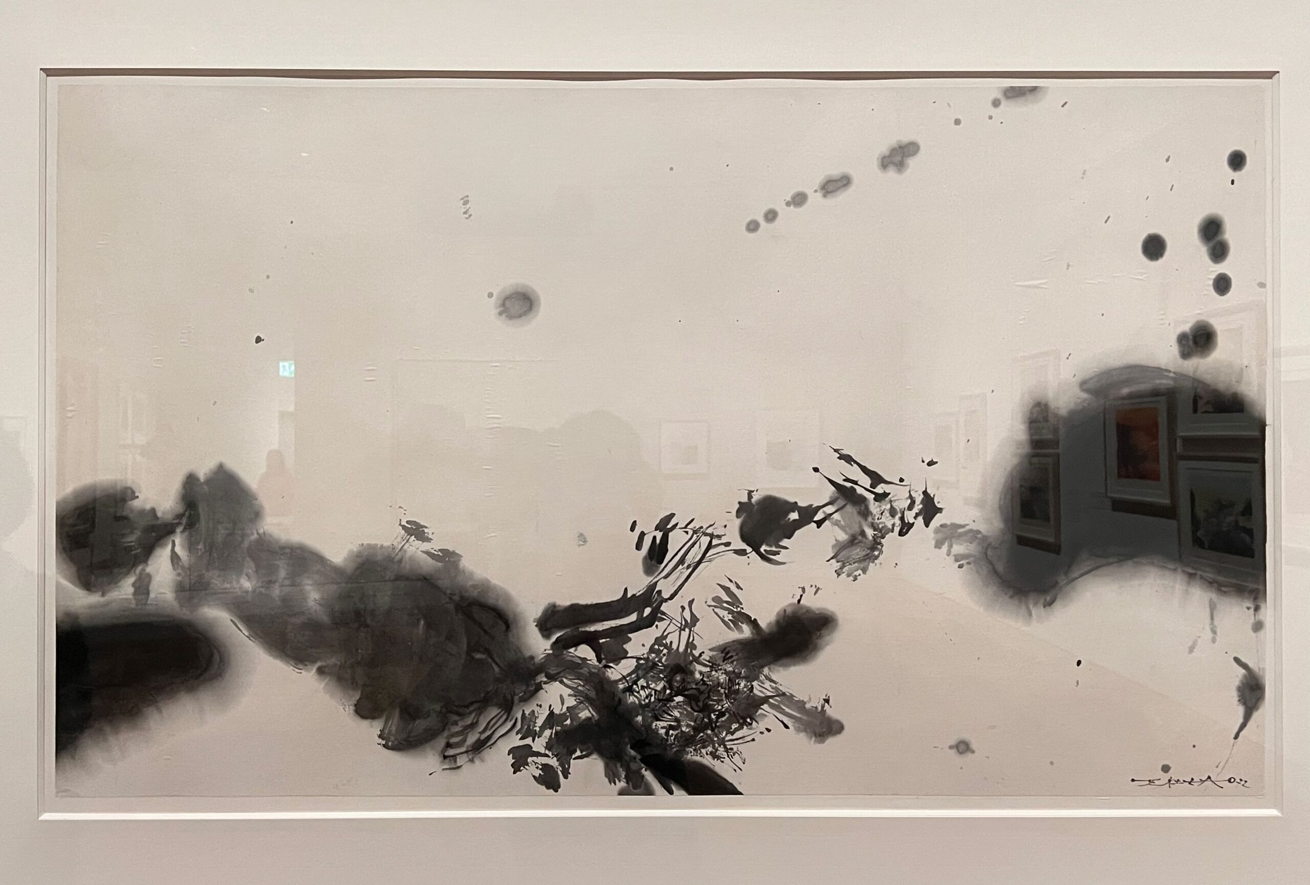 彼が老いてリトグラフなど工程の多い制作が段々できなくなってきた頃に作った作品が目に入りました。黒いインクで作った作品や、水墨で描いた作品です。これは中国を出てから、何十年も世界を相手に戦ってきた彼が、原点回帰を受け入れた作品だそうです。