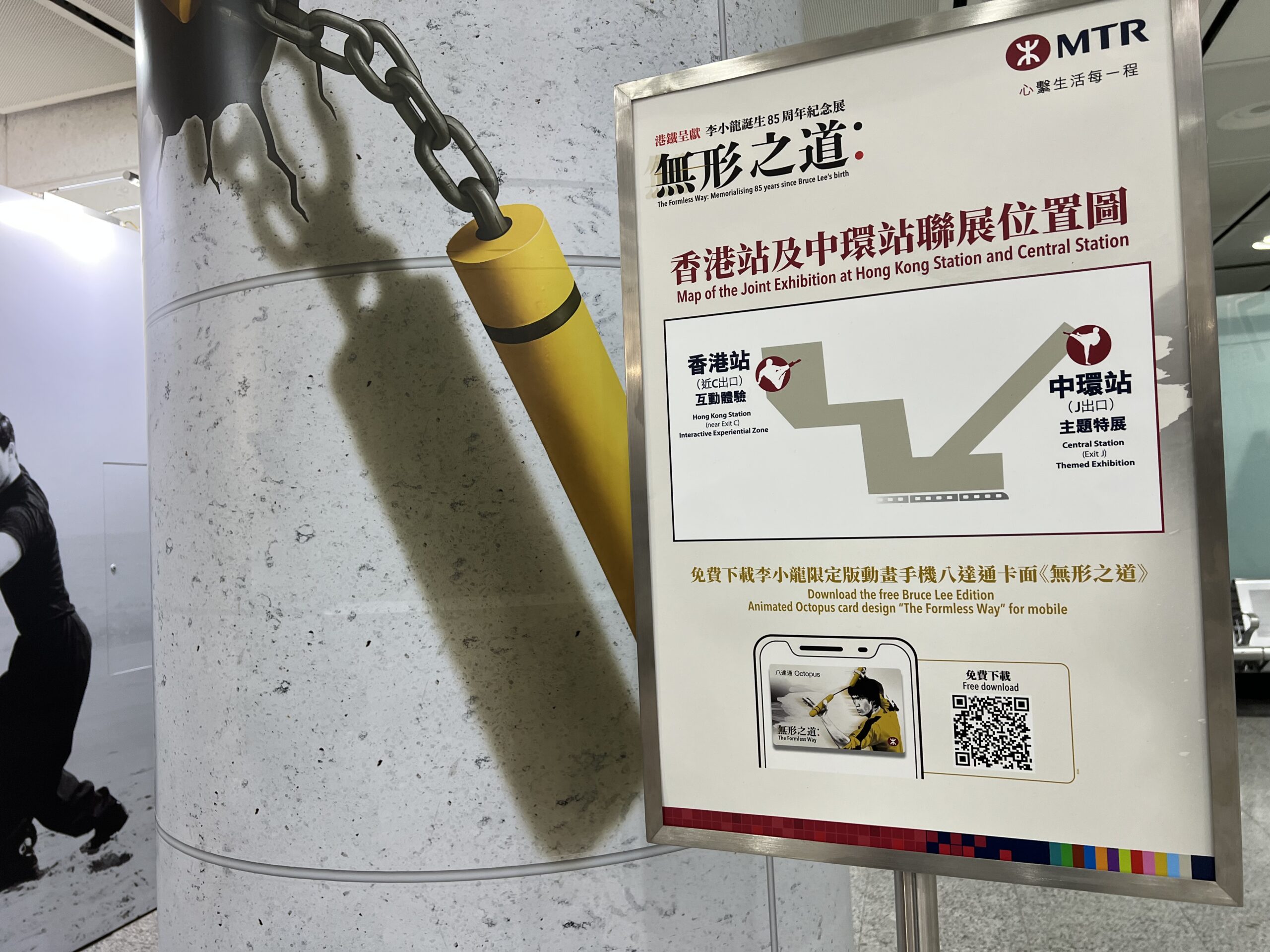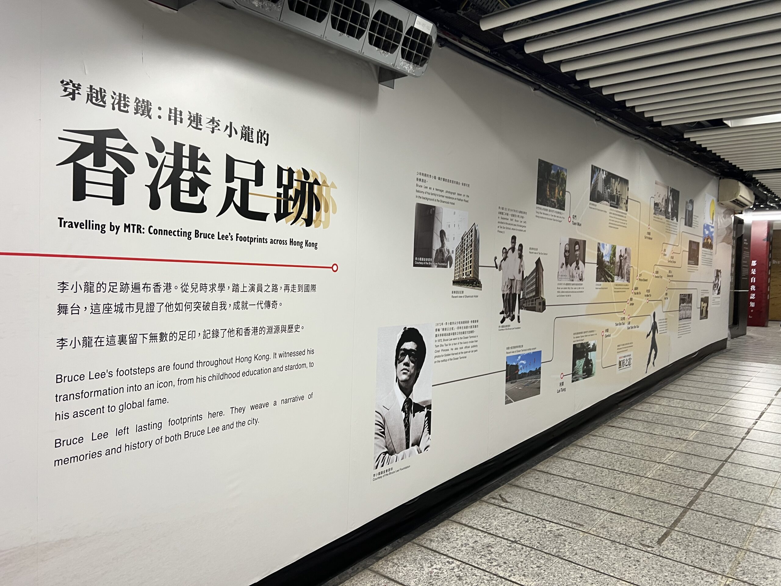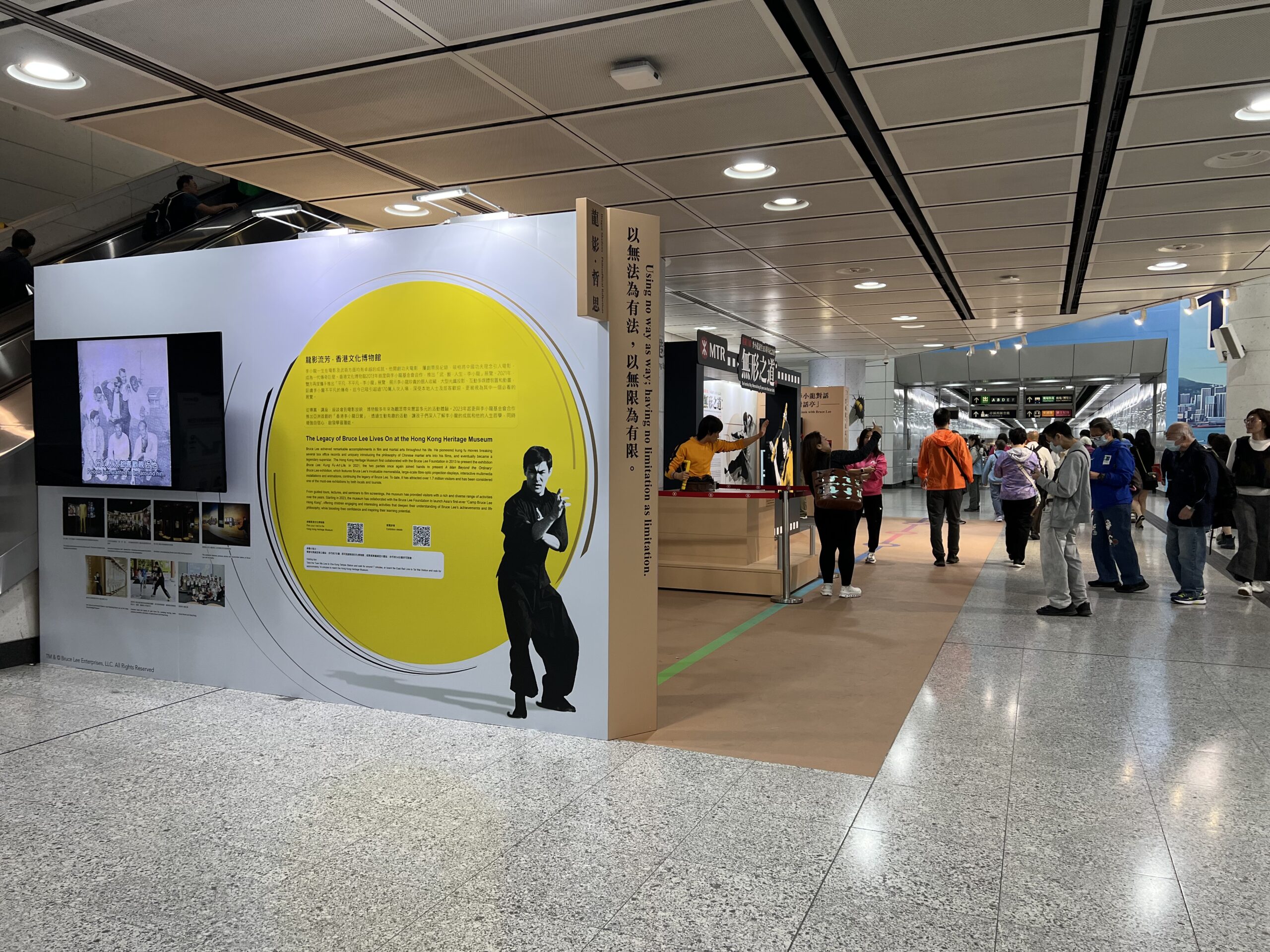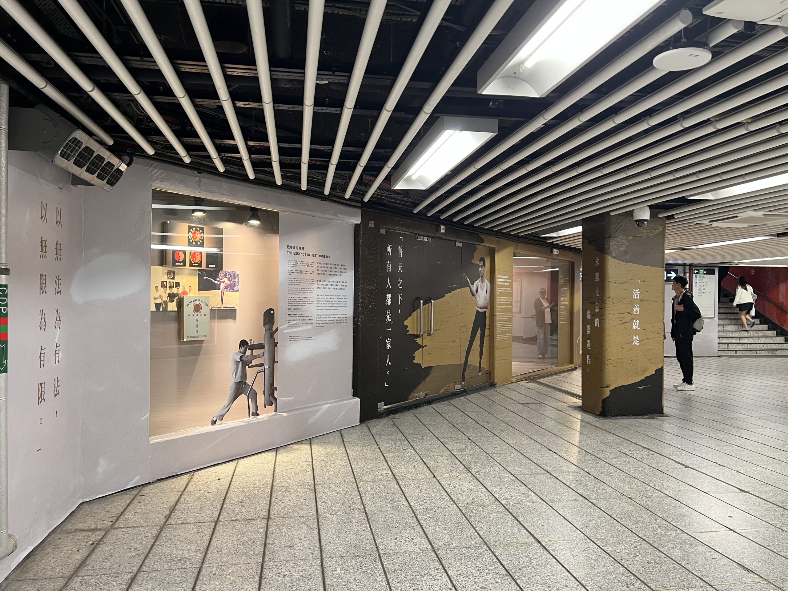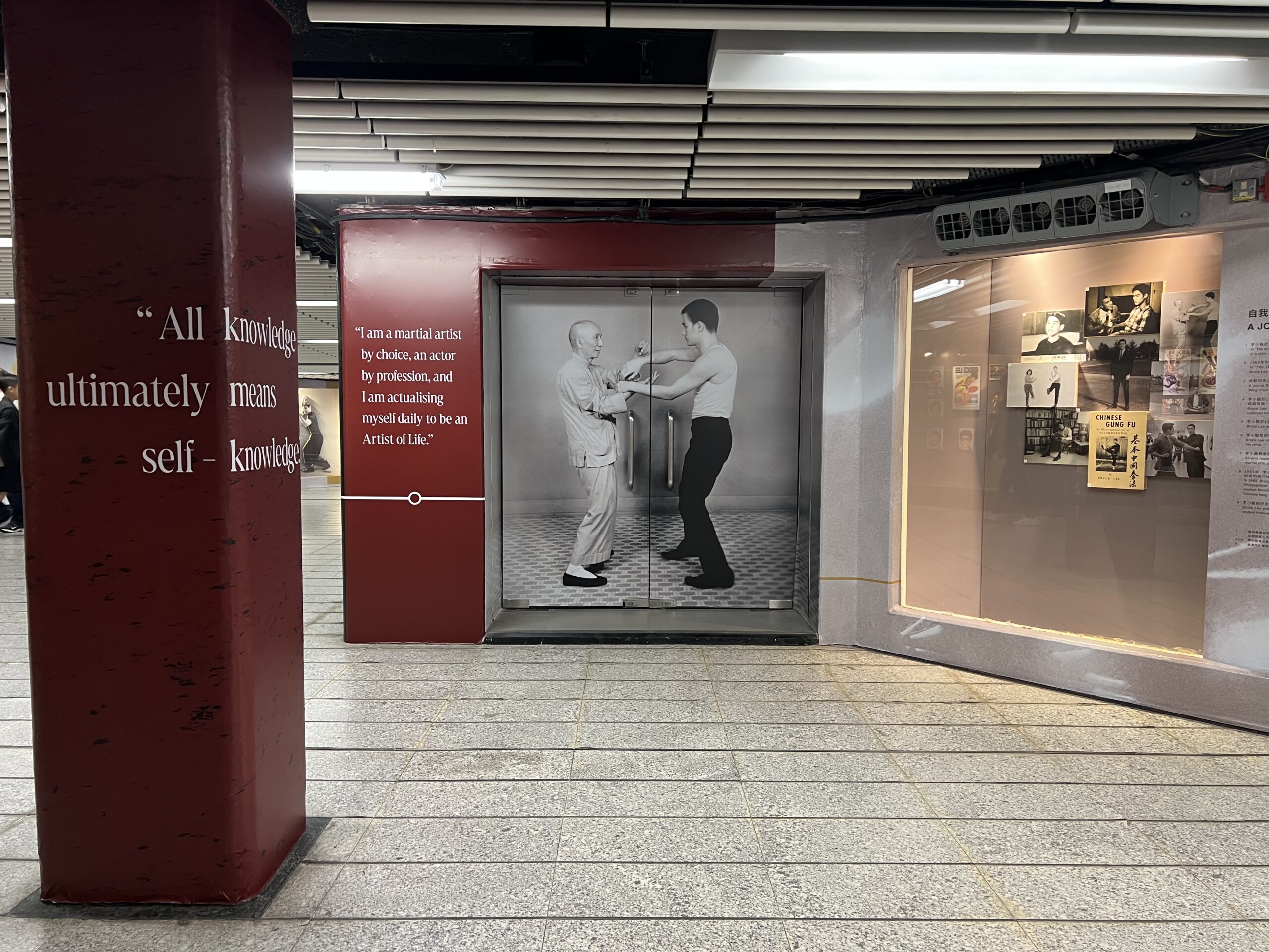 ▶︎中環駅のJ出口近くのメイン展示会場 テーマ展「MTRでの旅:香港に点在するブルース・リーの足跡をつなぐ」