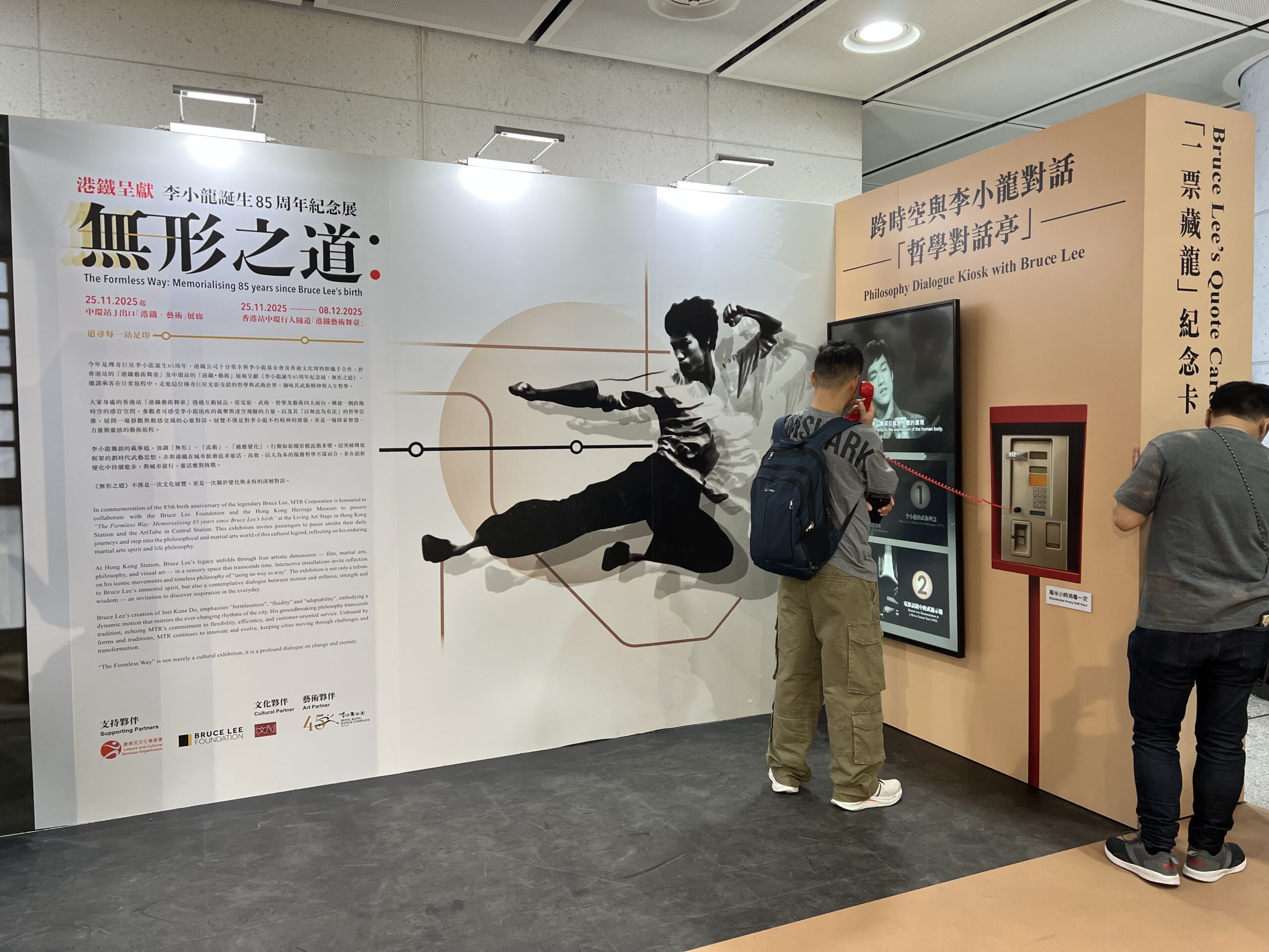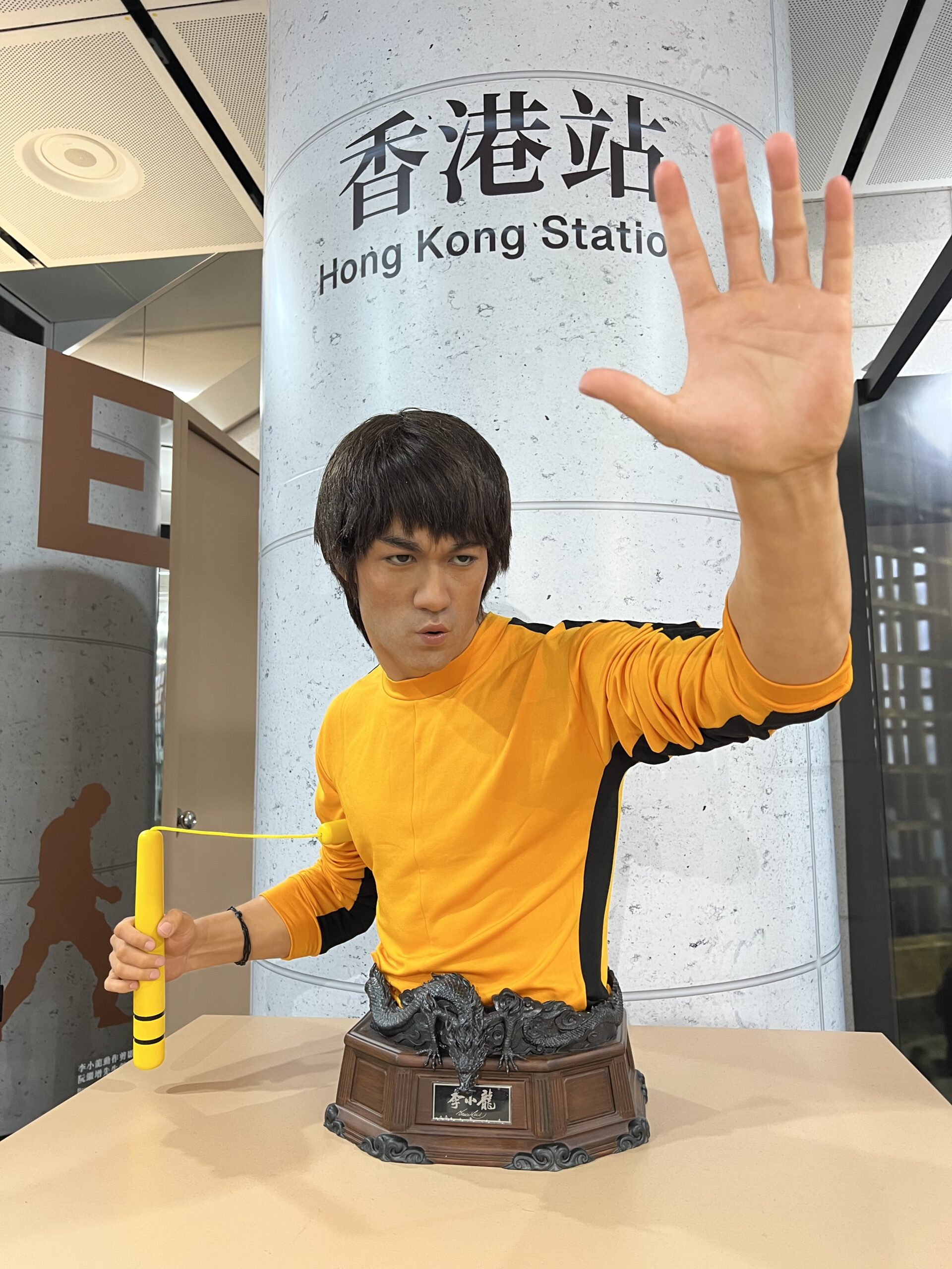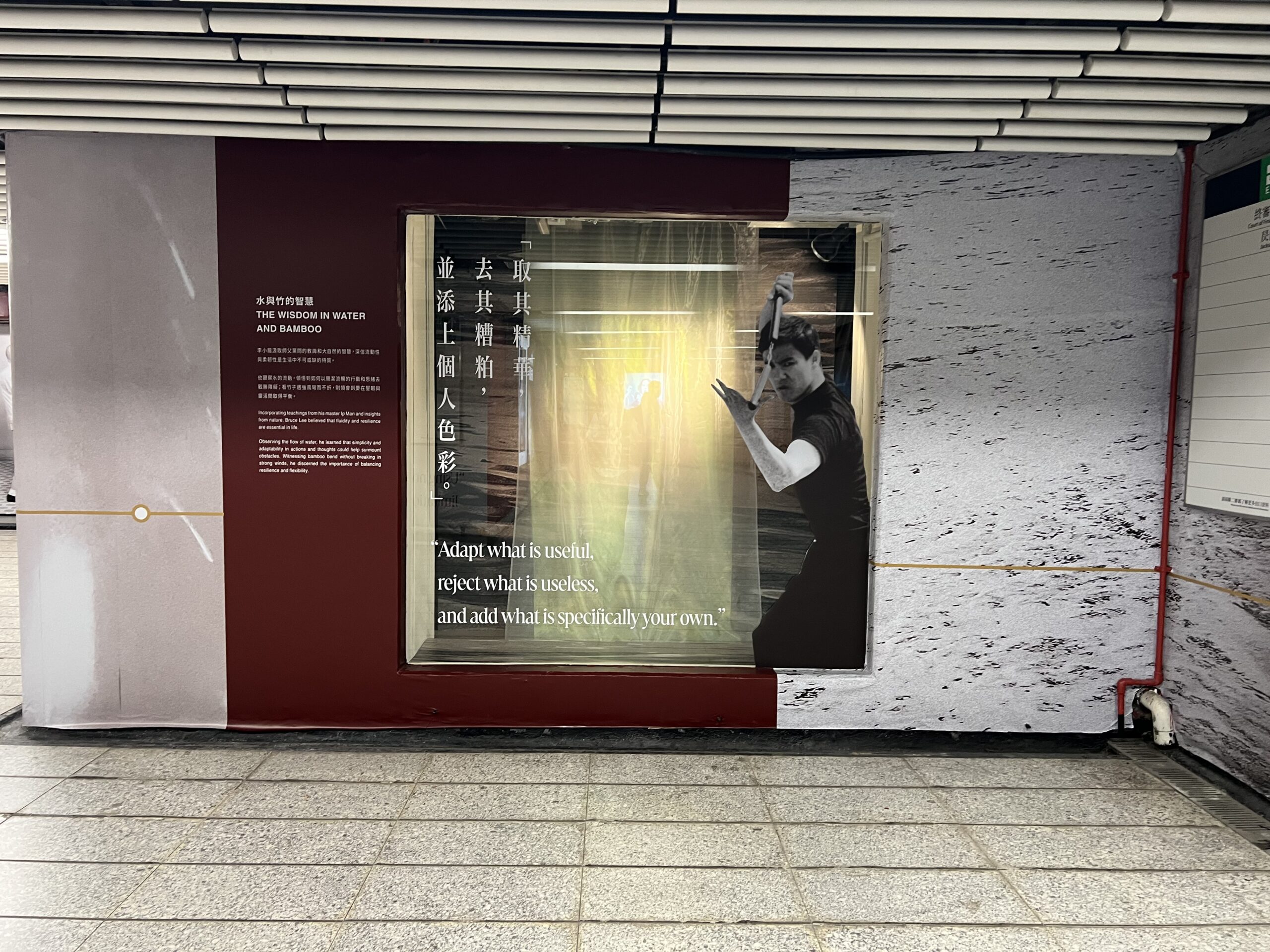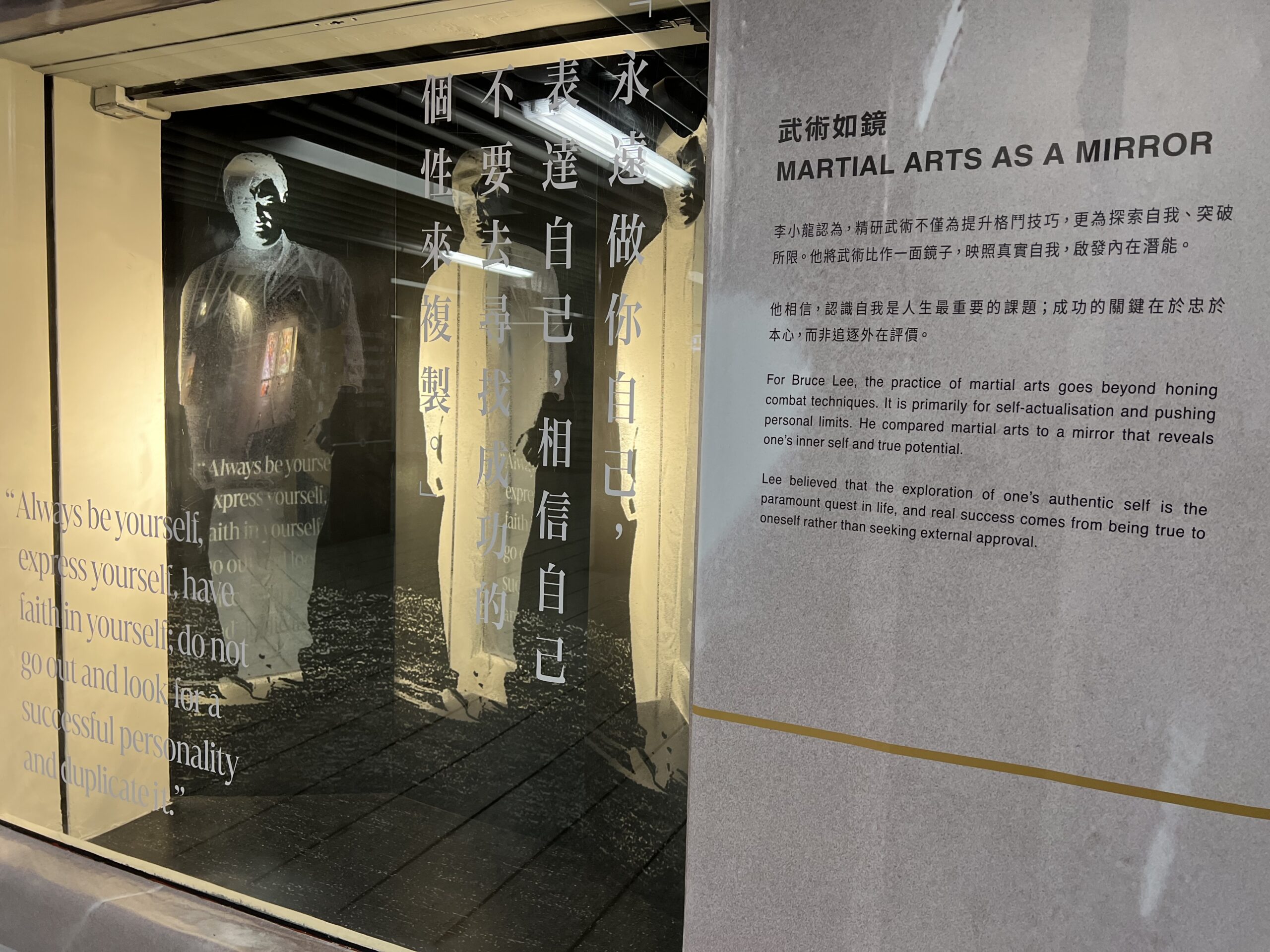 こちらは期間限定の特設会場。最終日は12月8日です。ブルース・リーの代表的な動きや哲学的洞察を紹介するインスタレーションや没入型のインタラクティブな体験ができます。この会場は多忙なビジネスマンなどが行き交う常に混雑した場所です。そんな人だからこそ、ぜひ立ち止まって見ていただきたい展示です。