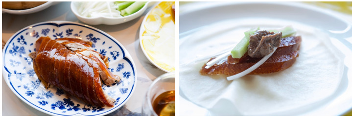 さて、入店時にぐーぐー言っていたお腹が少し落ち着いたところで、看板メニュー北京ダックの登場です。見てください、この光輝く北京ダックを!