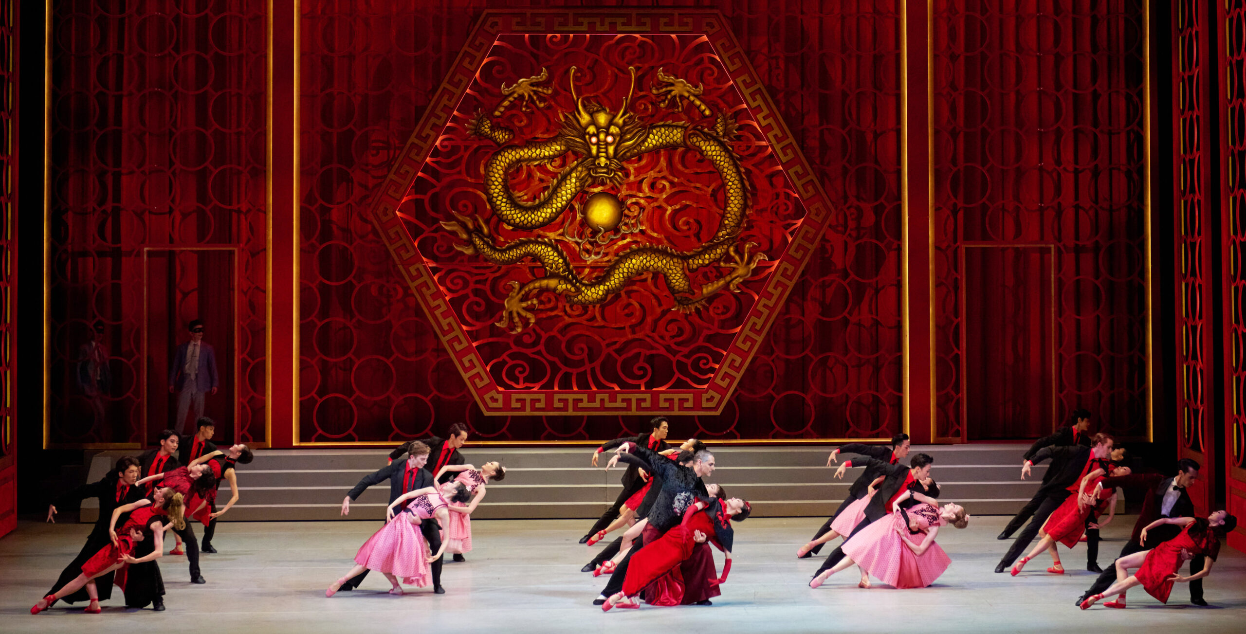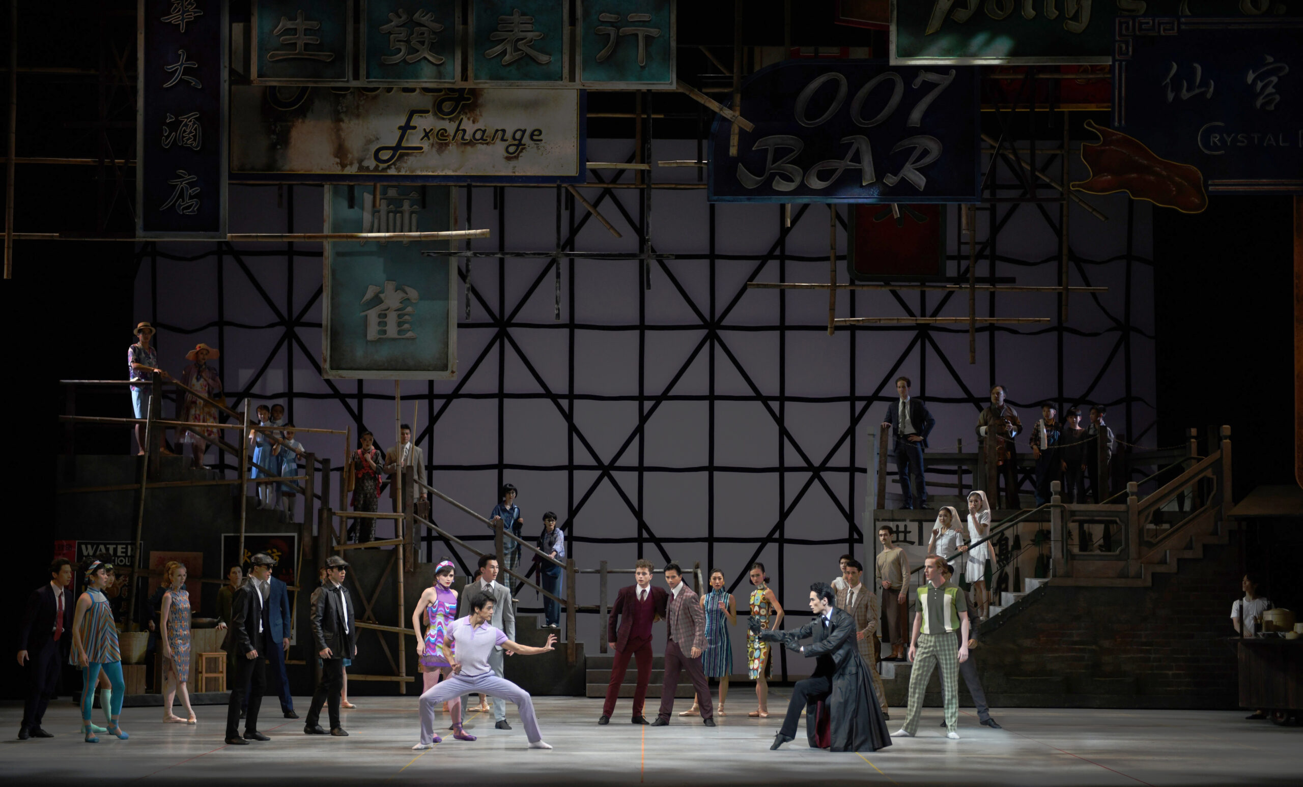 もう一つのハイライトは、衣装デザイナーのマンダイ・タム氏による華やかなチャイナドレス(旗袍:チーパオ)を含む280着以上の鮮やかなコスチュームと、舞台美術のリッキー・チャン氏のリアリティーと迫力ある香港の舞台セットです。ネオンライトに照らされた竹壁のある通りや麻雀賭博場などの世界が作られています。ぜひ、こちらにも目を向けて鑑賞していただくことをおすすめします。