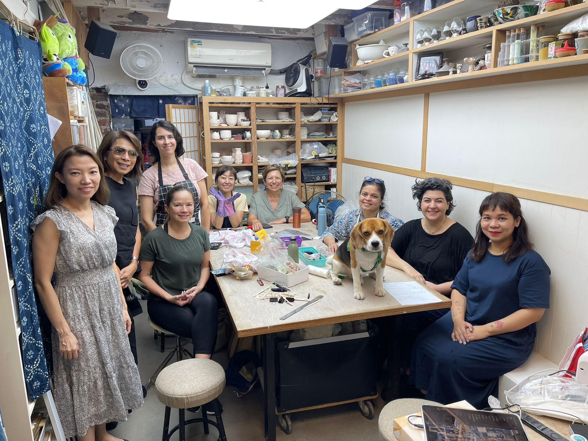 2012年から現在の場所でクラスを開催するClayhausでは、4週間(週1回、1回4時間)のワークショップで学びながら作品を作ります。しぼりのクラスは全部でレベル7まであり、広東語と英語のクラスがあります。今回筆者は、英語クラスに参加させてもらいました。クラスメートは、トルコやフランスやインドなど、世界中から集まった国際色豊かな面々。皆さんハンドメイドが好きというだけあって、とっても熱心に受講されていました。