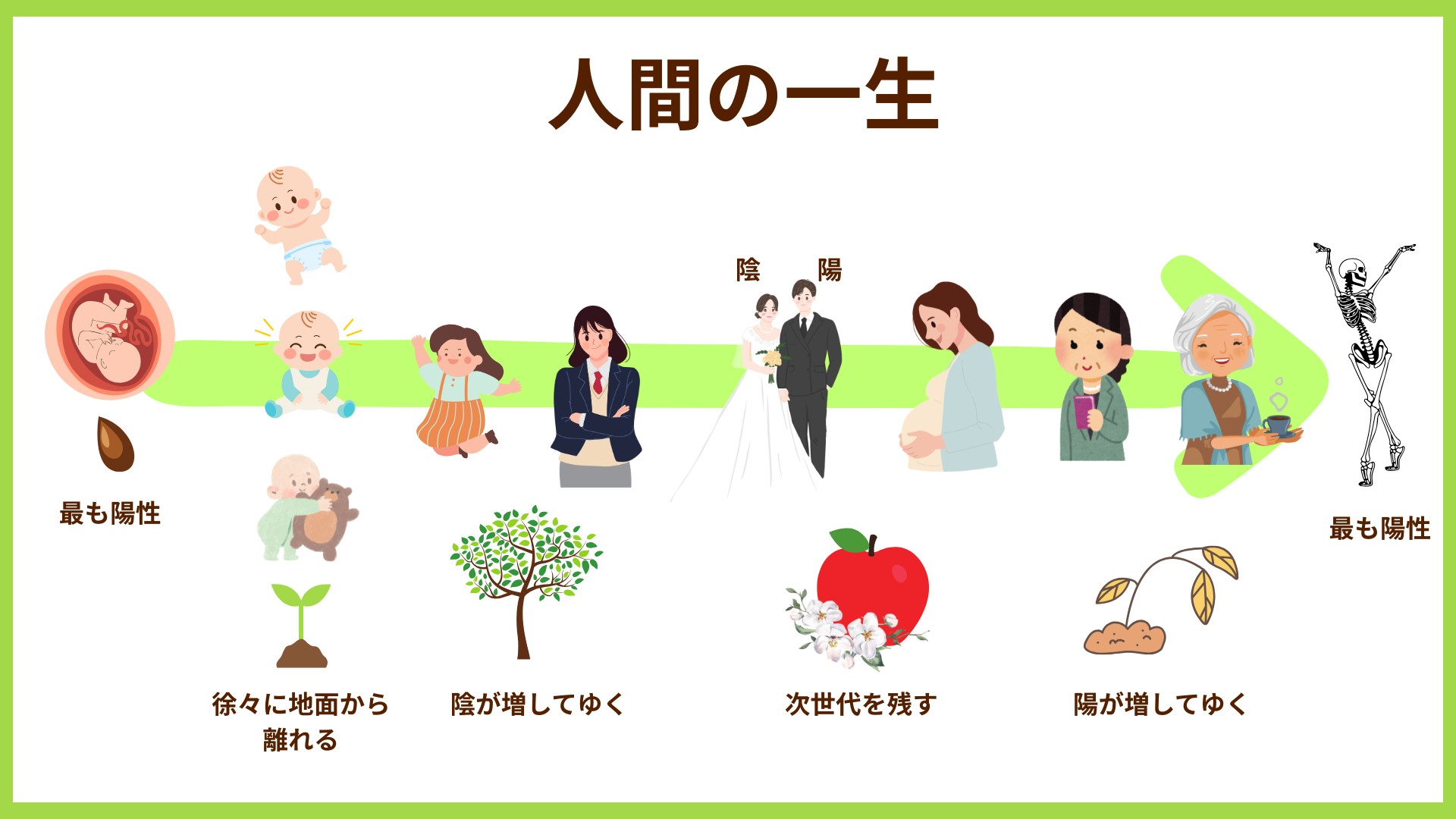 種(受精卵)⇒芽(幼児期)⇒草(子ども時代)⇒樹(大人)⇒花(人生の華の時期♡)⇒実(新しい命)⇒枯れる(老人期)