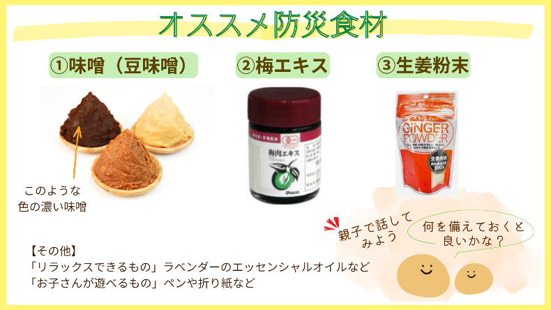 荷物が多くなってしまうと大変ですが、お子さんと「何を備えておくと良いかな?」を一緒に考えてみると良いですね^^