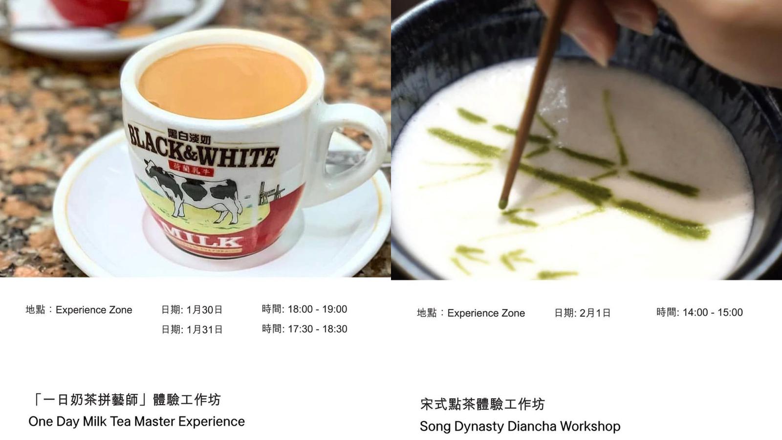 (写真左)ミルクティーマスター体験 (写真右)宋代點茶ワークショップ、Mary老師も参加します